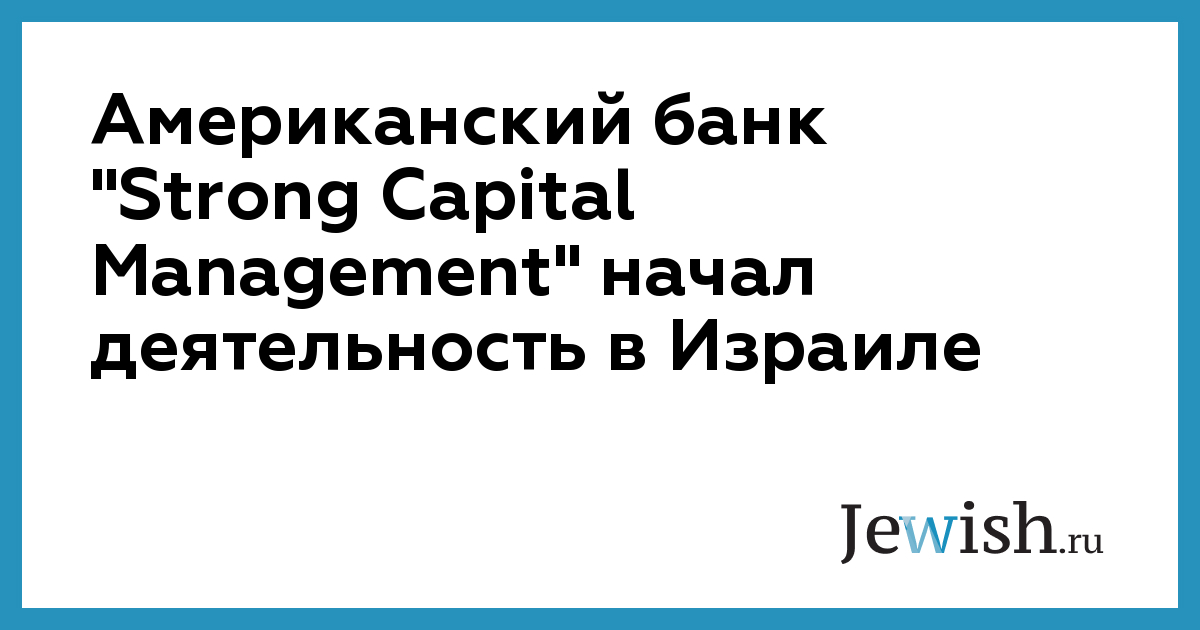 Американский банк "Strong Capital Management" начал деятельность в Израиле