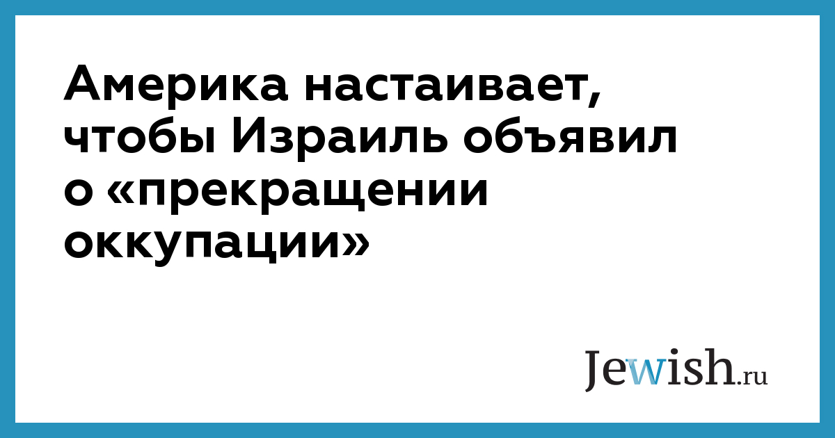 Америка настаивает, чтобы Израиль объявил о «прекращении оккупации»