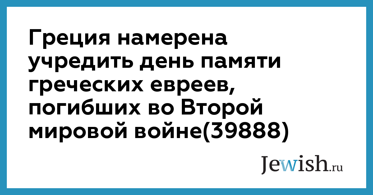 Греция намерена учредить день памяти греческих евреев, погибших во Второй мировой войне(39888)