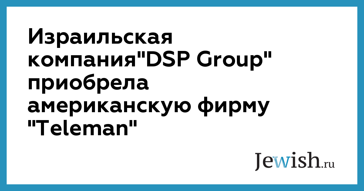 Израильская компания"DSP Group" приобрела американскую фирму "Teleman"