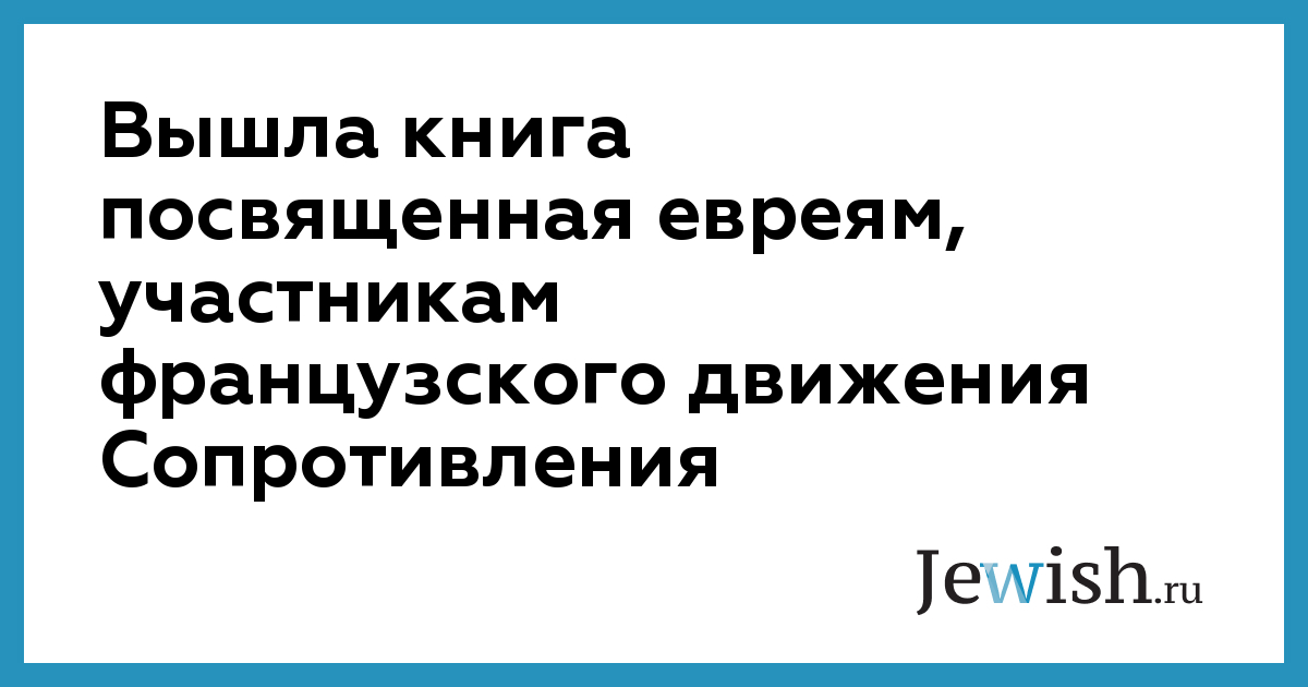 Вышла книга посвященная евреям, участникам французского движения Сопротивления