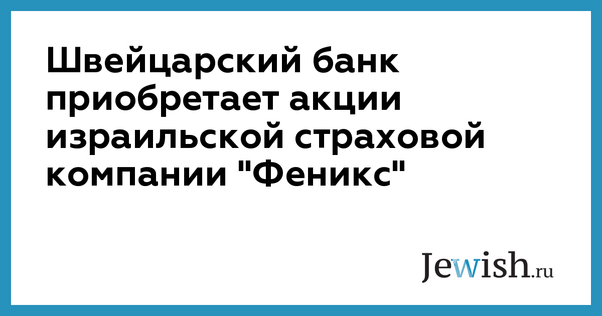 Швейцарский банк приобретает акции израильской страховой компании "Феникс"
