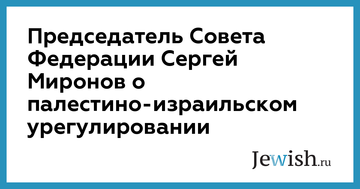 Председатель Совета Федерации Сергей Миронов о палестино-израильском урегулировании