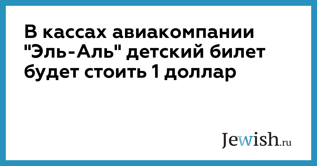 В кассах авиакомпании "Эль-Аль" детский билет будет стоить 1 доллар