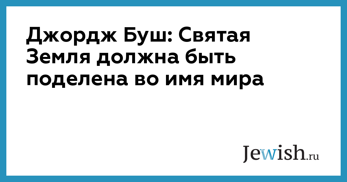 «Святая Земля должна быть поделена между израильтянами и палестинцами во имя мира», — закончил свою речь Джордж Буш. Израиль Плюс.