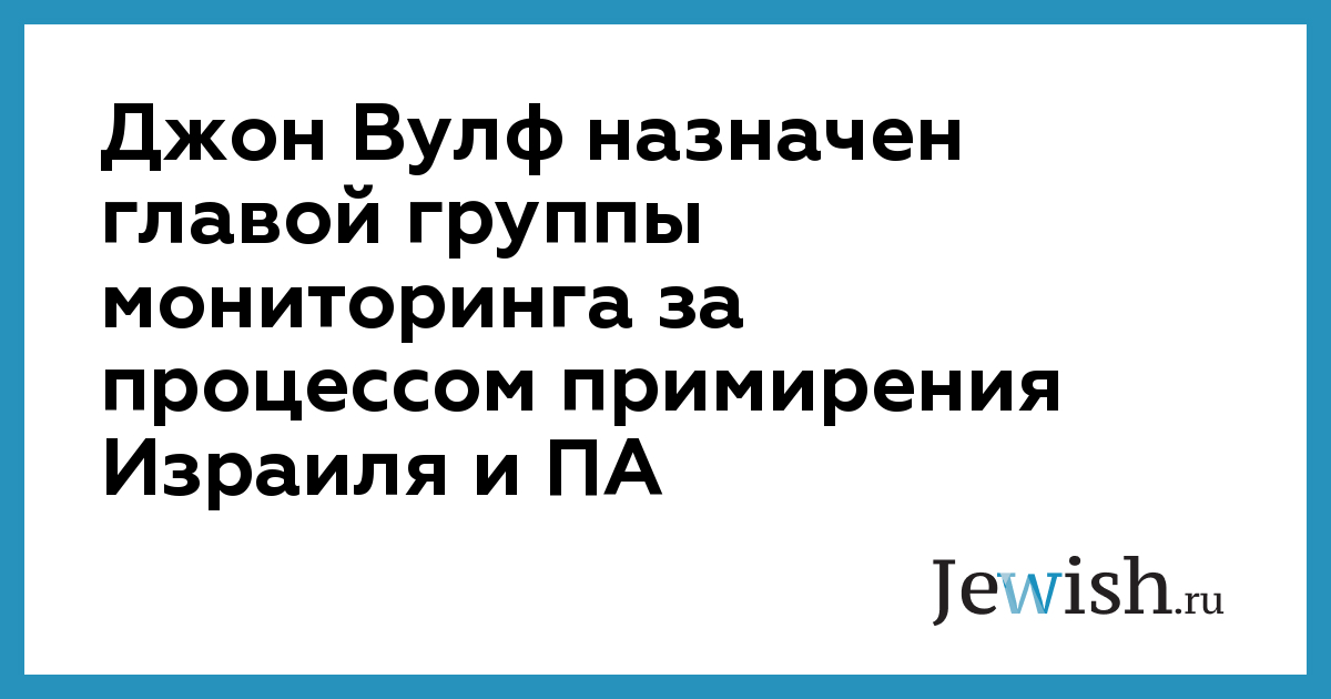 Джон Вулф назначен главой группы мониторинга за процессом примирения Израиля и ПА