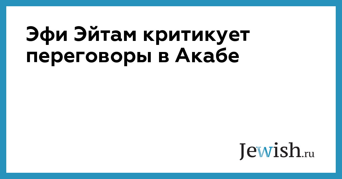 Эфи Эйтам критикует переговоры в Акабе