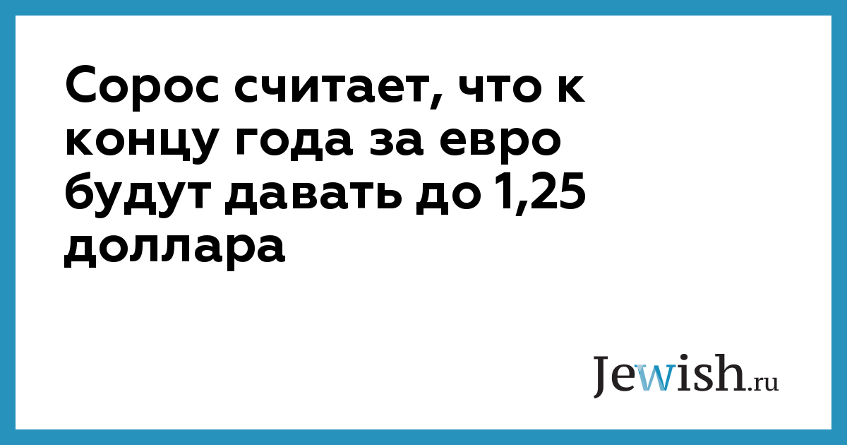 Сорос считает, что к концу года за евро будут давать до 1,25 доллара
