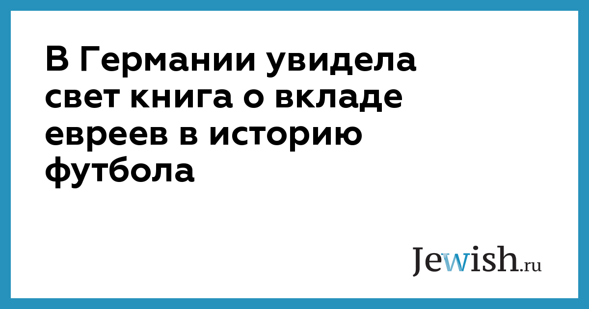 В Германии увидела свет книга о вкладе евреев в историю футбола