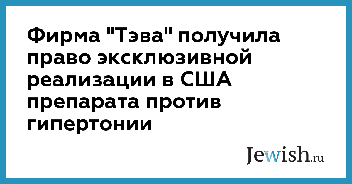 Фирма "Тэва" получила право эксклюзивной реализации в США препарата против гипертонии
