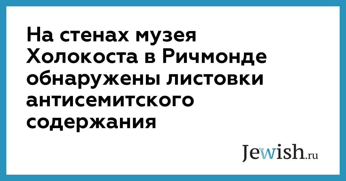 На стенах музея Холокоста в Ричмонде обнаружены листовки антисемитского содержания