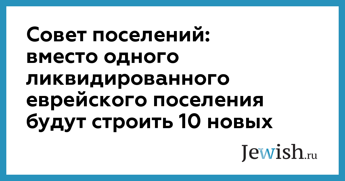 Совет поселений: вместо одного ликвидированного еврейского поселения будут строить 10 новых