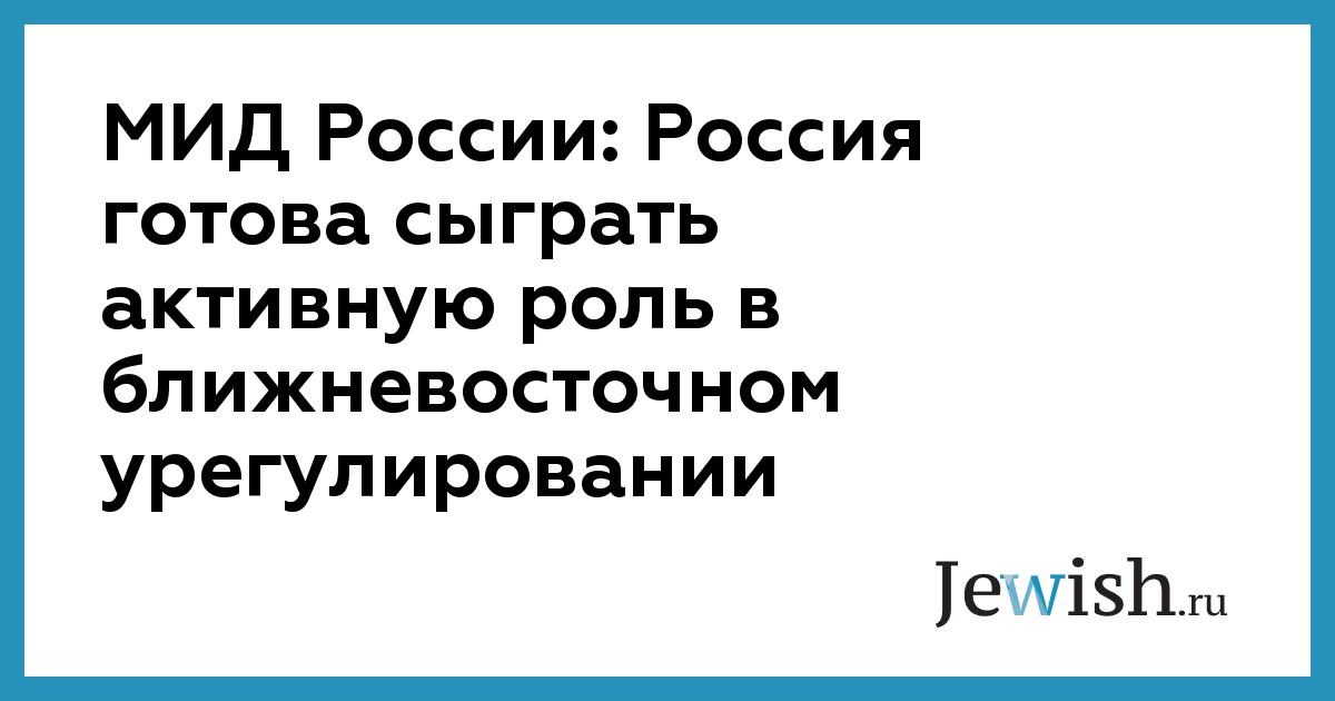 МИД России: Россия готова сыграть активную роль в ближневосточном урегулировании