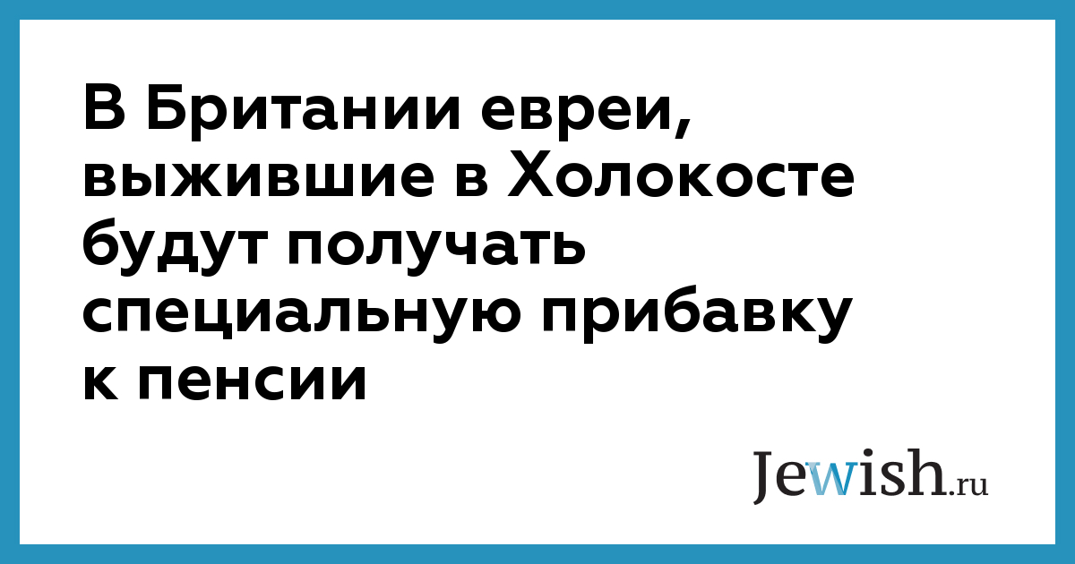 В Британии евреи, выжившие в Холокосте будут получать специальную прибавку к пенсии