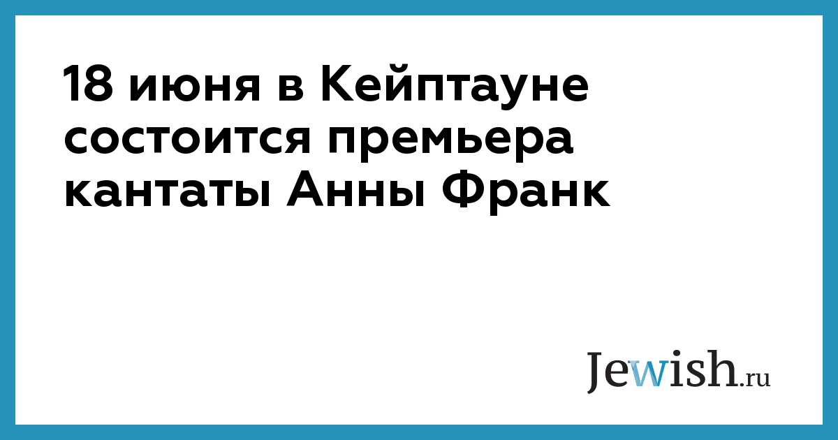18 июня в Кейптауне состоится премьера кантаты Анны Франк