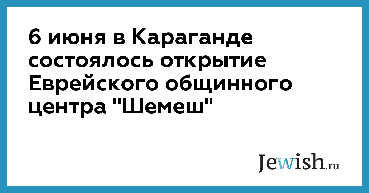 6 июня в Караганде состоялось открытие Еврейского общинного центра "Шемеш"