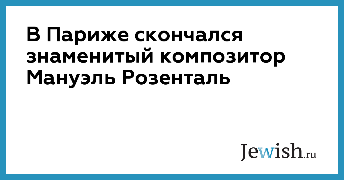 В Париже скончался знаменитый композитор Мануэль Розенталь