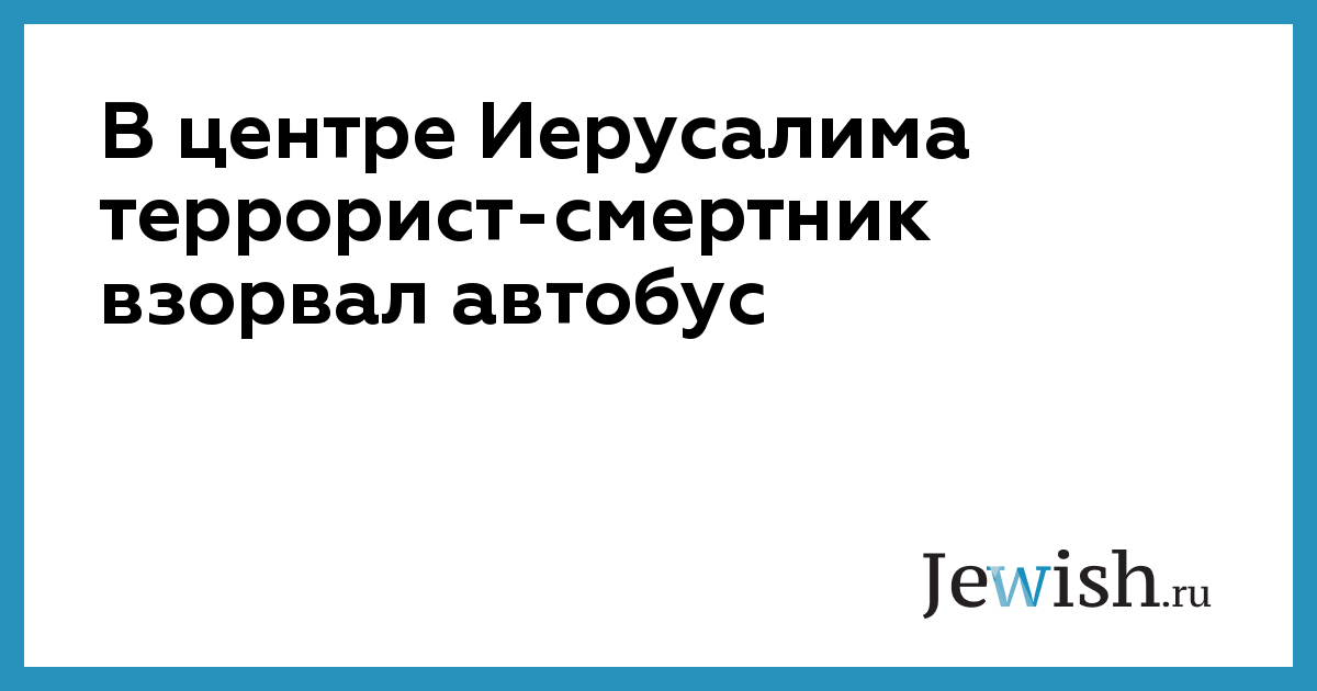 Террорист-самоубийца привел в действие взрывное устройство, войдя в автобус маршрута № 14 компании "Эгед", в центре Иерусалима на перекрестке улиц Дерех Яффо и Короля Джорджа. При взрыве пострадало не меньше 30 человек, есть погибшие.