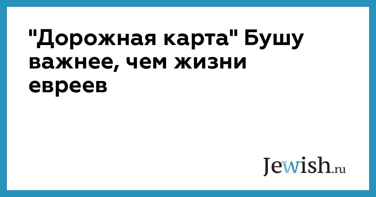 "Дорожная карта" Бушу важнее, чем жизни евреев