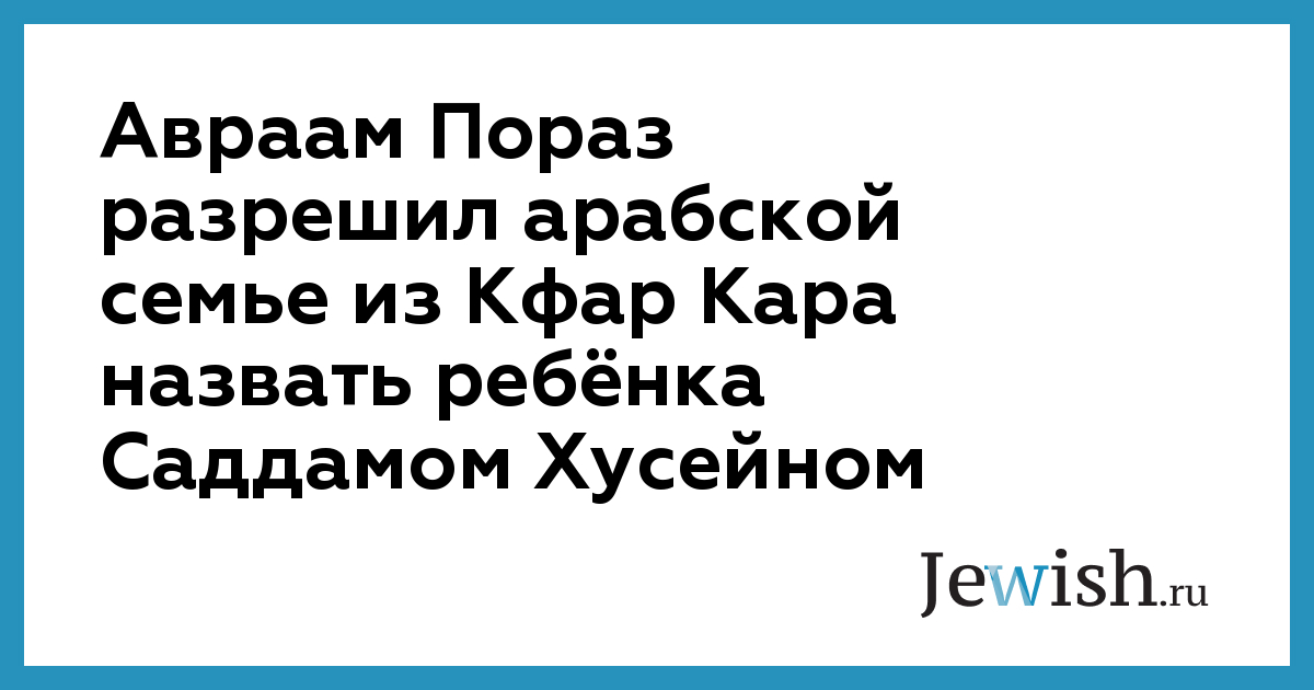 Авраам Пораз разрешил арабской семье из Кфар Кара назвать ребёнка Саддамом Хусейном