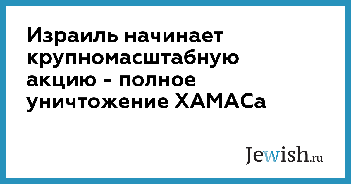 Израиль начинает крупномасштабную акцию — полное уничтожение ХАМАСа