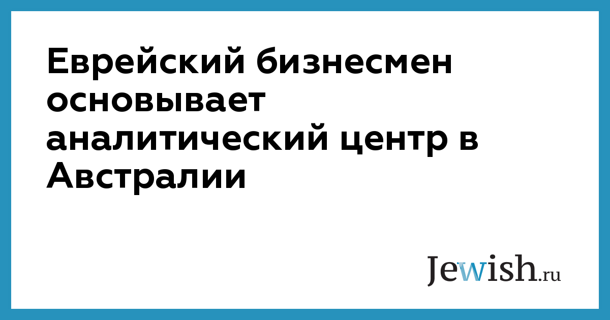 Еврейский бизнесмен основывает аналитический центр в Австралии