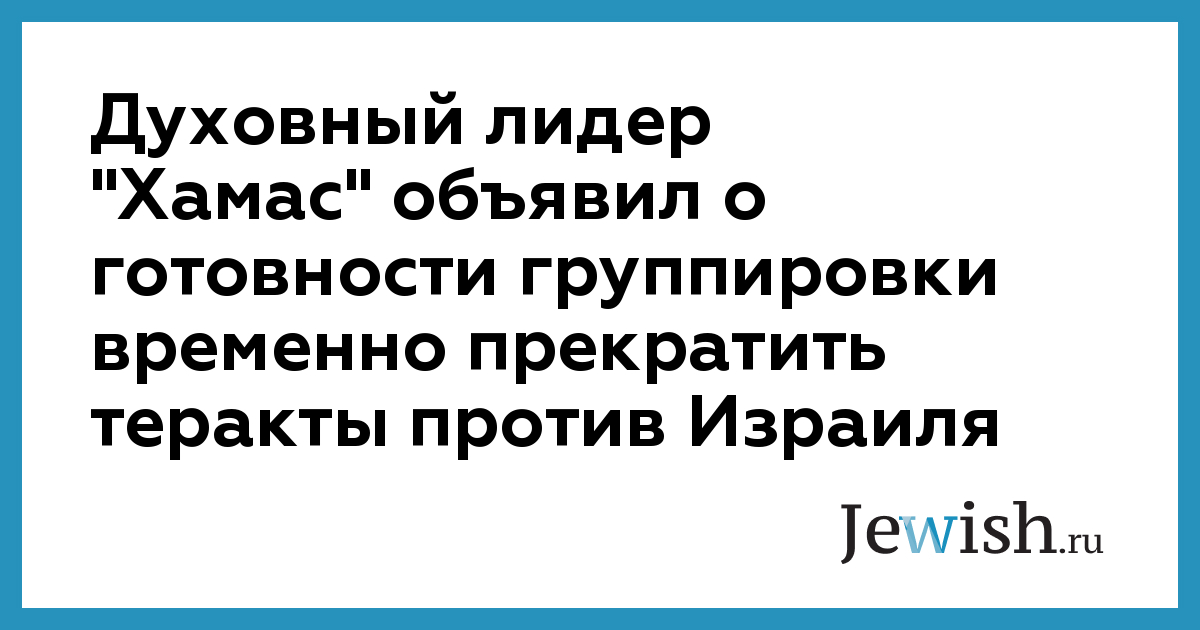 Духовный лидер "Хамас" объявил о готовности группировки временно прекратить теракты против Израиля