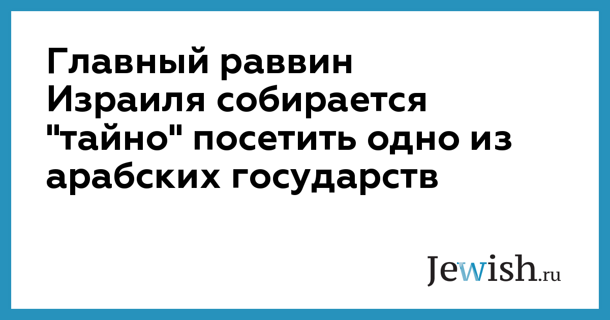 Главный раввин Израиля собирается "тайно" посетить одно из арабских государств