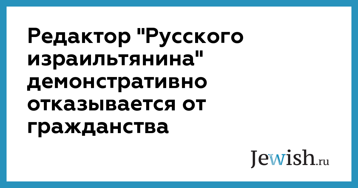Редактор "Русского израильтянина" демонстративно отказывается от гражданства