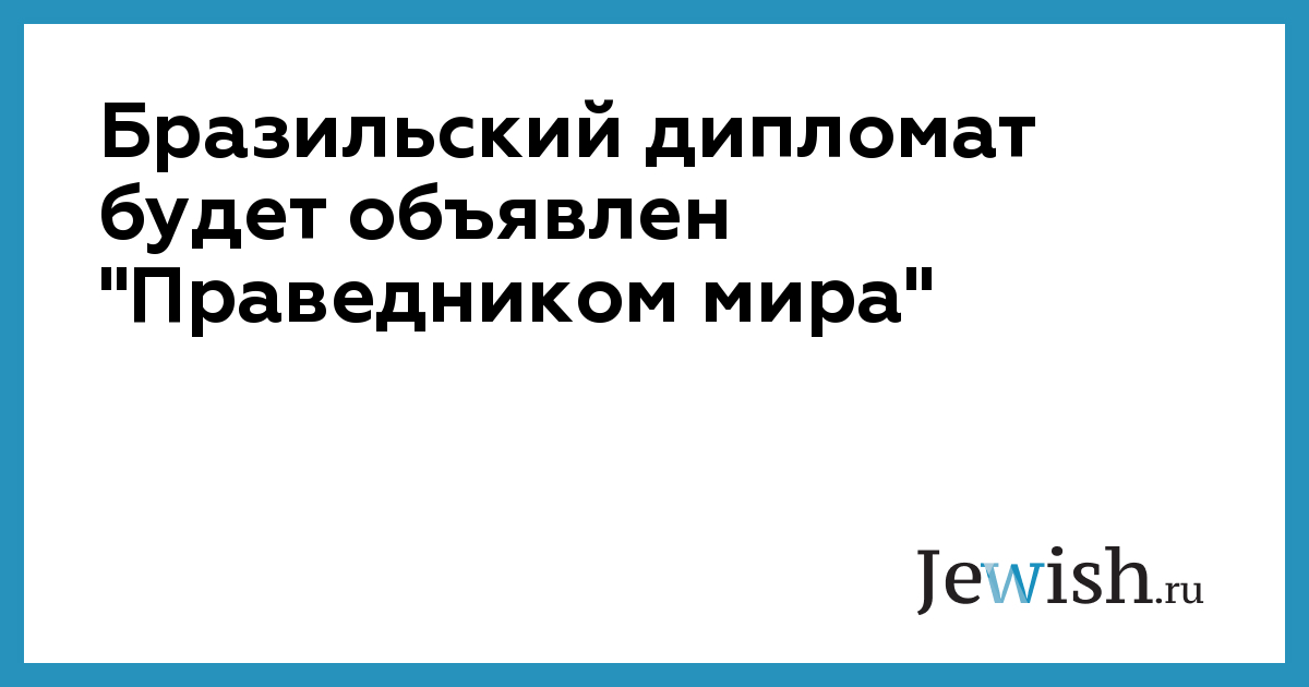 Бразильский дипломат будет объявлен "Праведником мира"