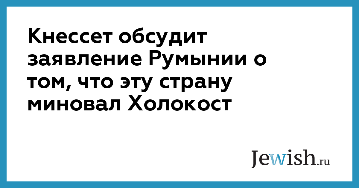Кнессет обсудит заявление Румынии о том, что эту страну миновал Холокост