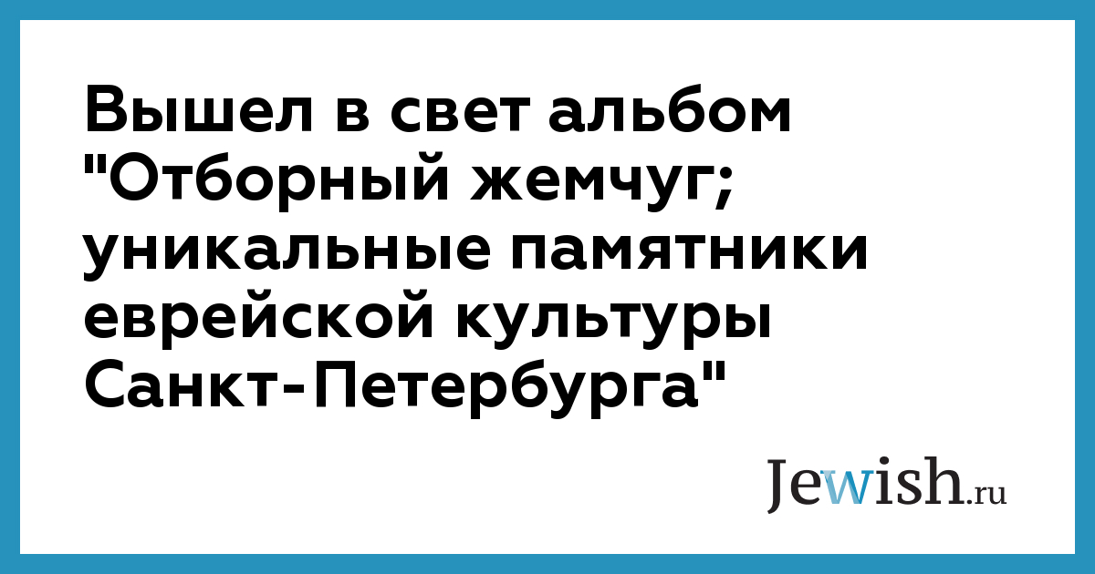Вышел в свет альбом "Отборный жемчуг; уникальные памятники еврейской культуры Санкт-Петербурга"