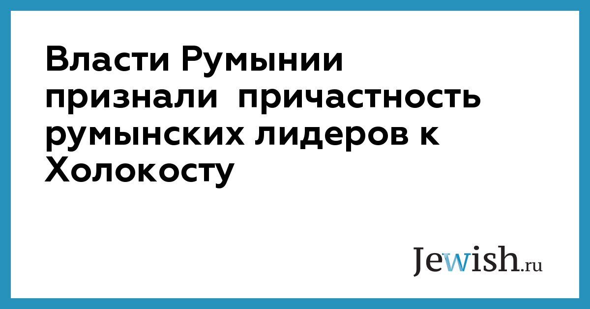 Но вчера румынское правительство признало, что власти страны в ходе Второй мировой войны участвовали в "серьезных военных преступлениях, погромах и массовых депортациях румынских евреев на территории, занятые или контролируемые румынской армией в период с 1940 по 1944 гг., а также в дискриминации и истреблении людей, что попадает под определение "Холокоста".