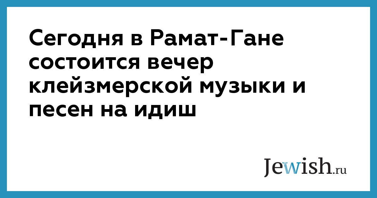 Сегодня в Рамат-Гане состоится вечер клейзмерской музыки и песен на идиш