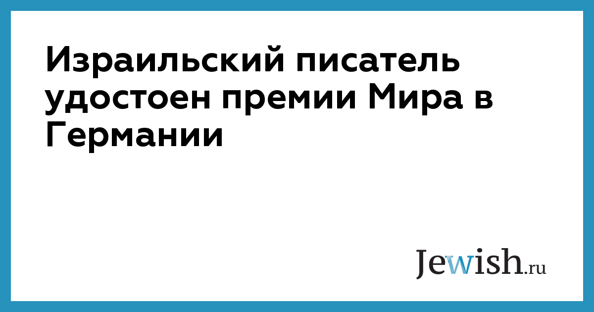 В 1992 году Амос Оз уже был удостоен другой немецкой премиии Мира от Союза германской книготорговли,- сообщает JTA.