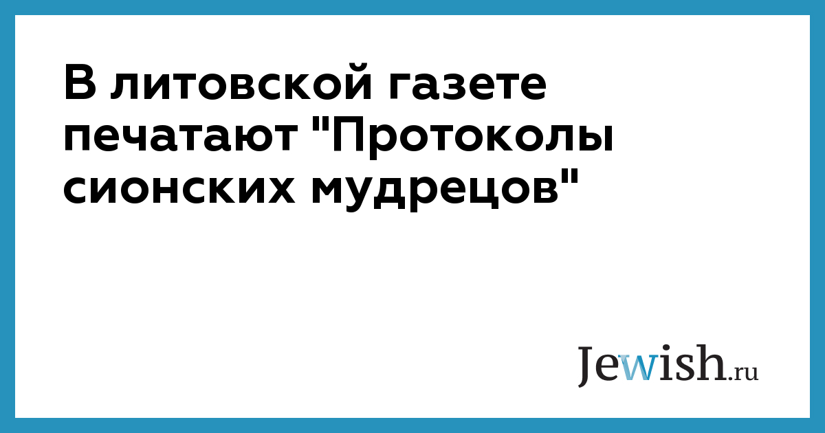 В литовской газете печатают "Протоколы сионских мудрецов"