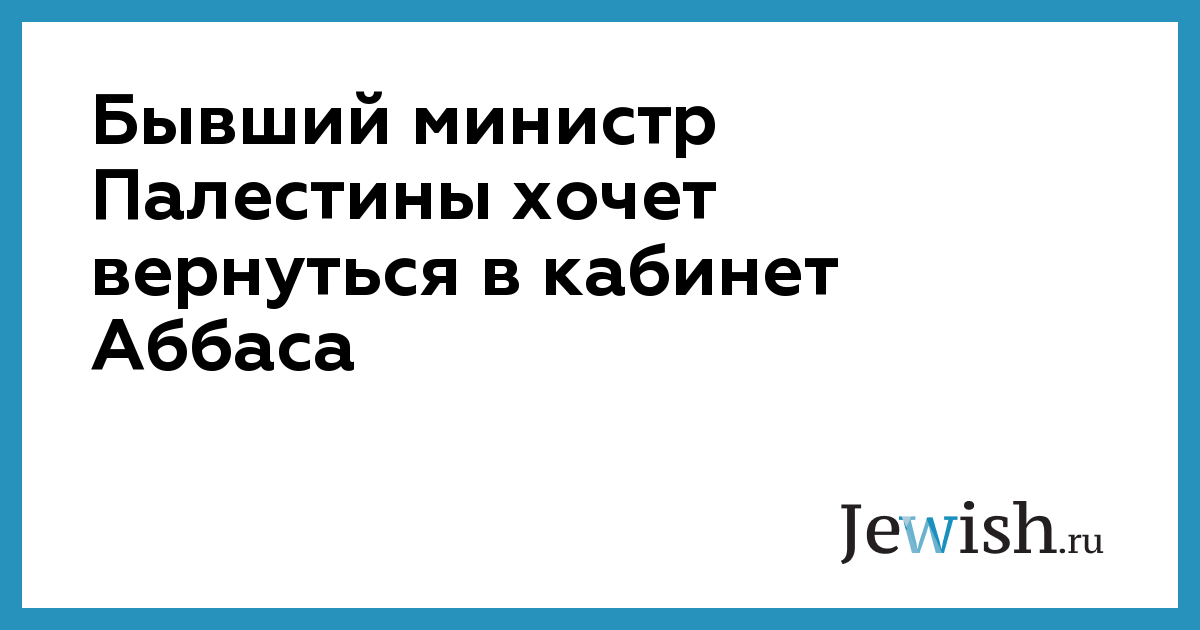 Бывший министр Палестины хочет вернуться в кабинет Аббаса