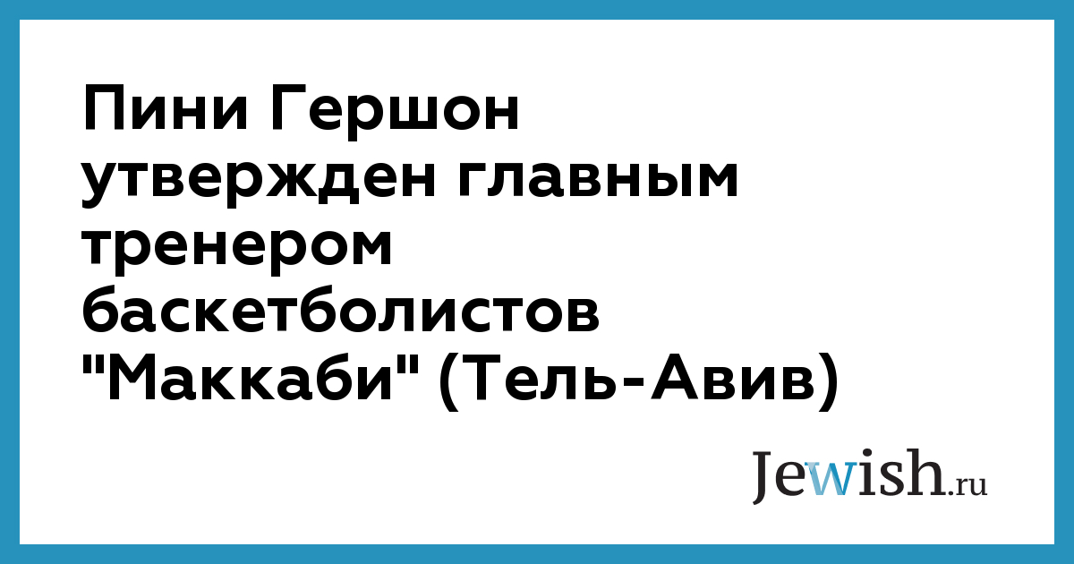 Пини Гершон утвержден главным тренером баскетболистов "Маккаби" (Тель-Авив)