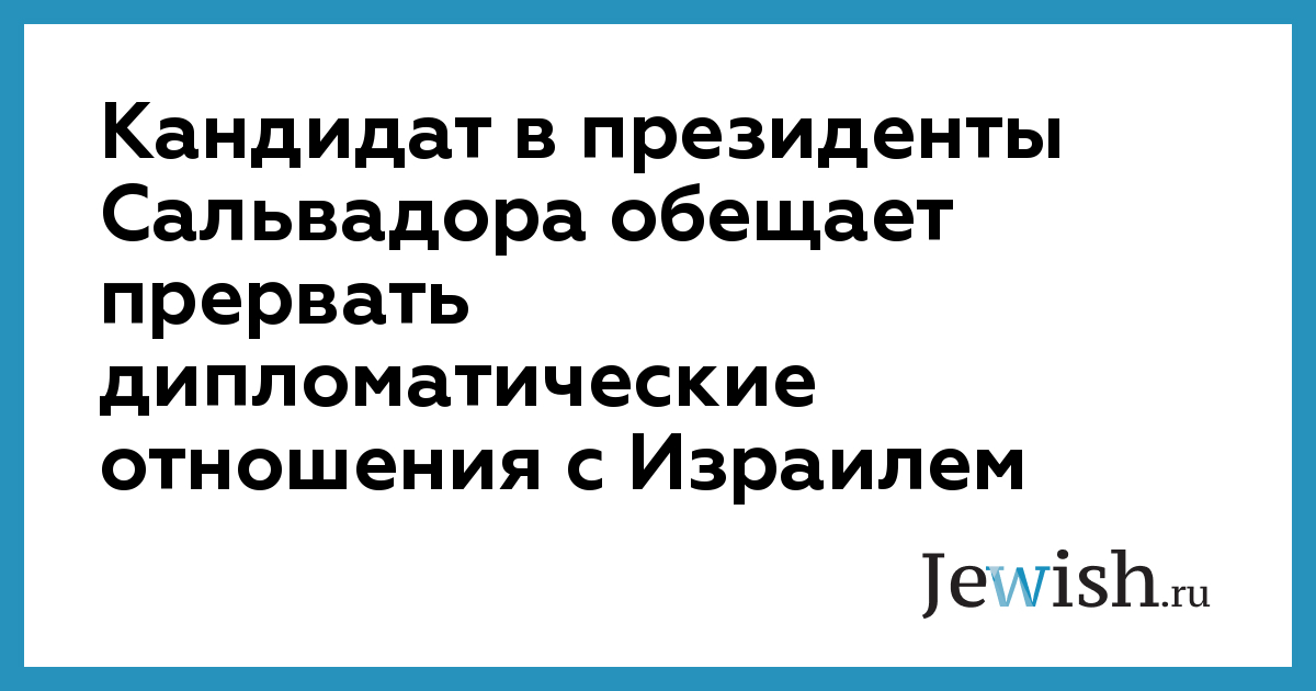 Кандидат в президенты Сальвадора обещает прервать дипломатические отношения с Израилем