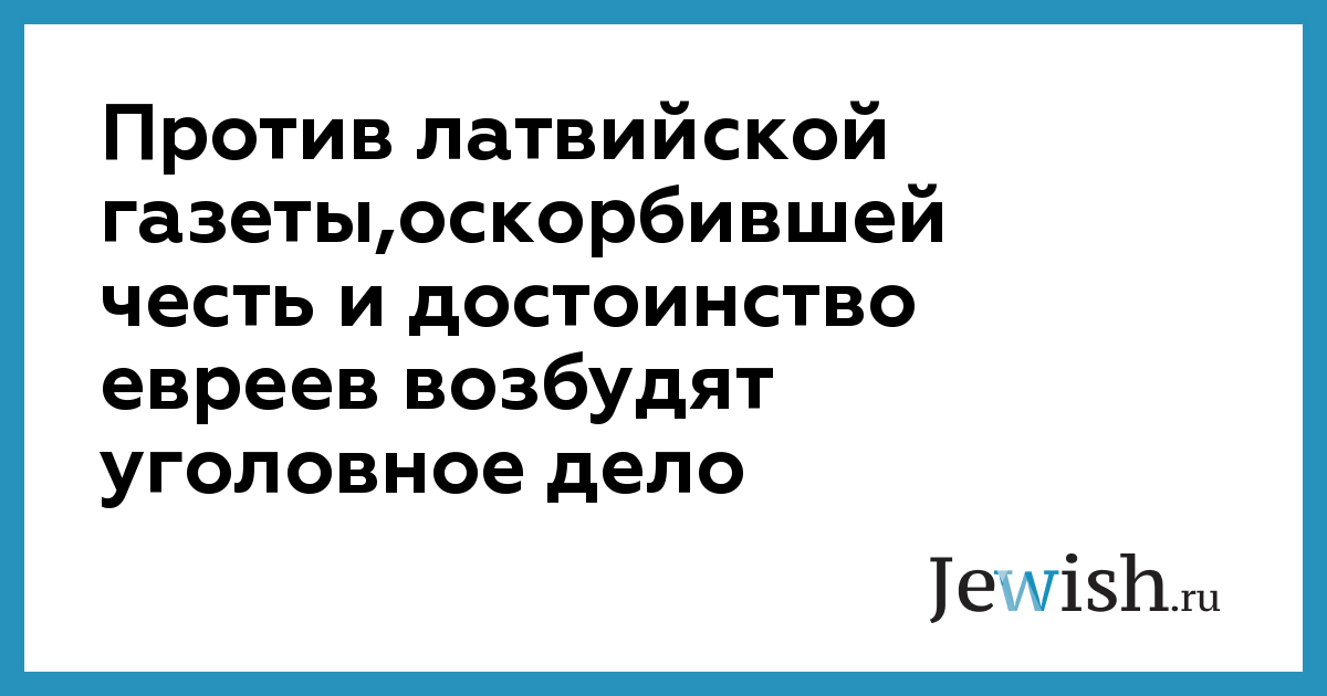 Против латвийской газеты,оскорбившей честь и достоинство евреев возбудят уголовное дело