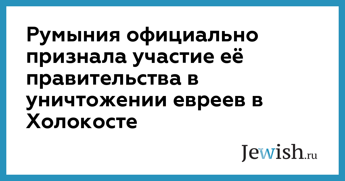 Румыния официально признала участие её правительства в уничтожении евреев в Холокосте