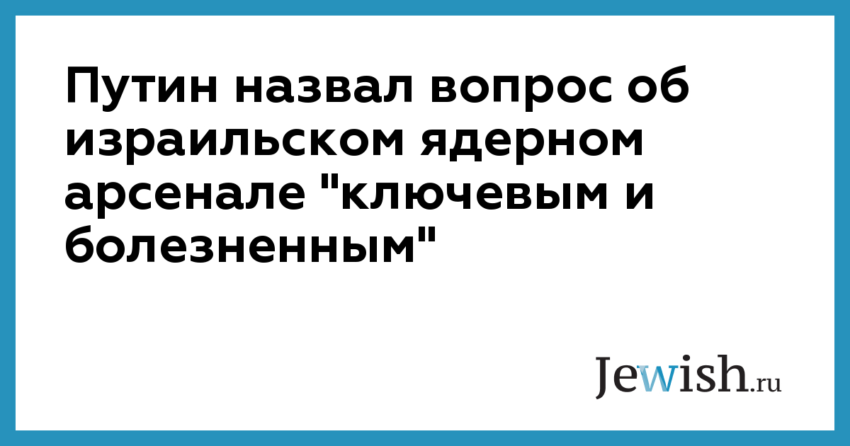 Путин назвал вопрос об израильском ядерном арсенале "ключевым и болезненным"