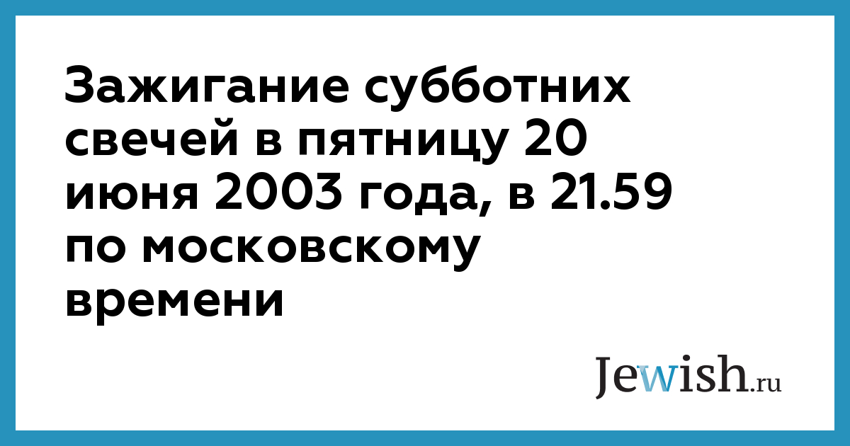 Зажигание субботних свечей в пятницу 20 июня 2003 года, в 21.59 по московскому времени