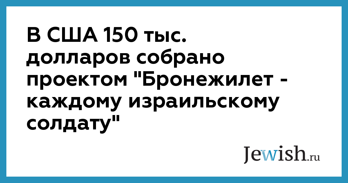 В США 150 тыс. долларов собрано проектом "Бронежилет — каждому израильскому солдату"