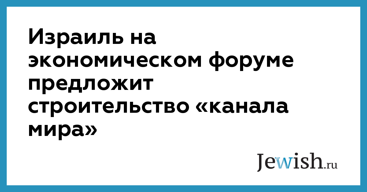 Израиль на экономическом форуме предложит строительство «канала мира»