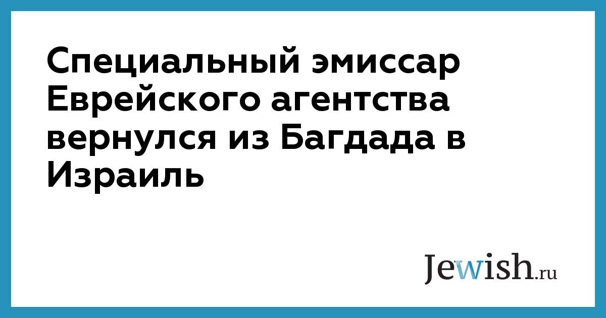 Миссия посланника Еврейского агентства в Багдад стала возможной благодаря сотрудничеству ЕА и еврейской гуманитарной организации ХИАС.