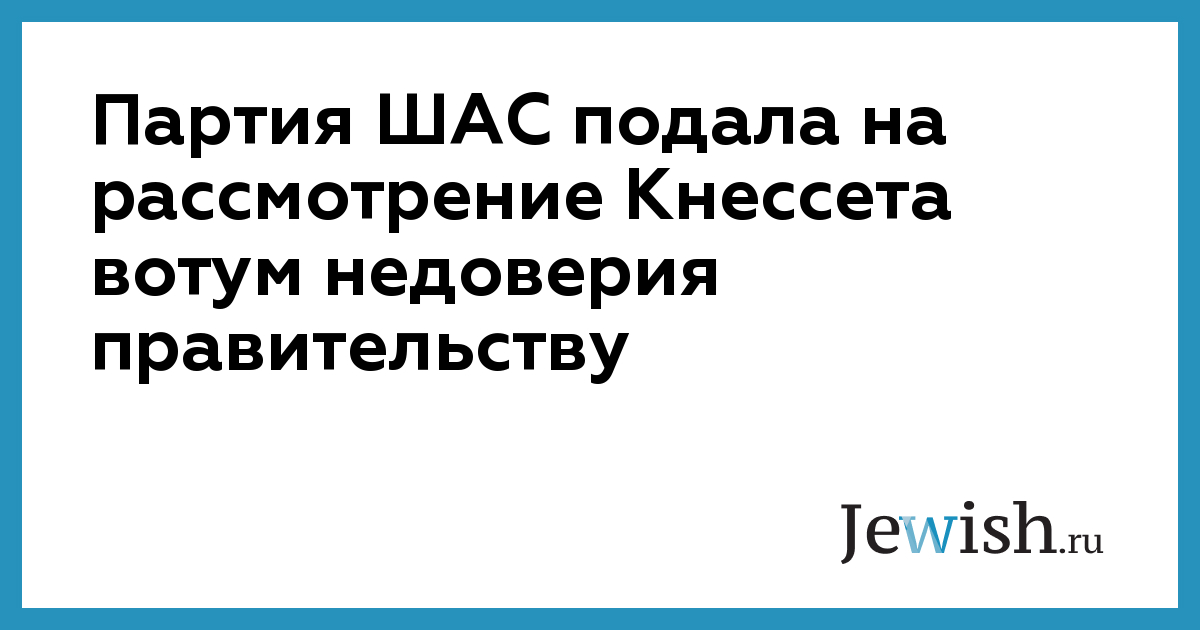 Партия ШАС подала на рассмотрение Кнессета вотум недоверия правительству
