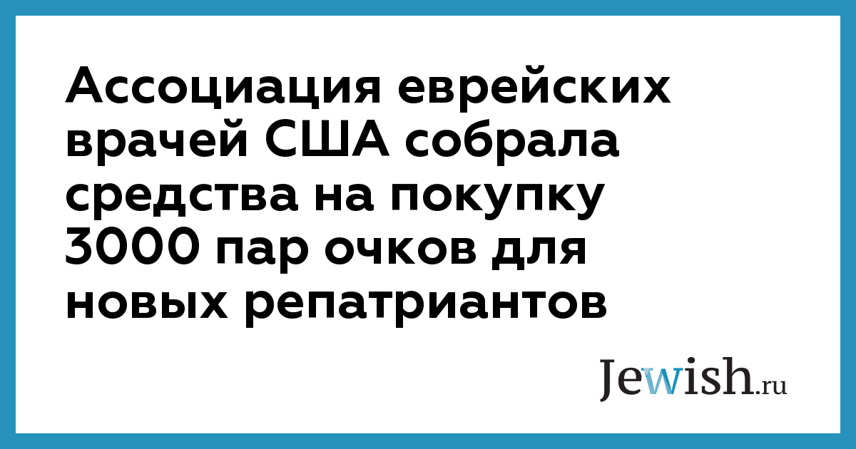 Ассоциация еврейских врачей США собрала средства на покупку 3000 пар очков для новых репатриантов