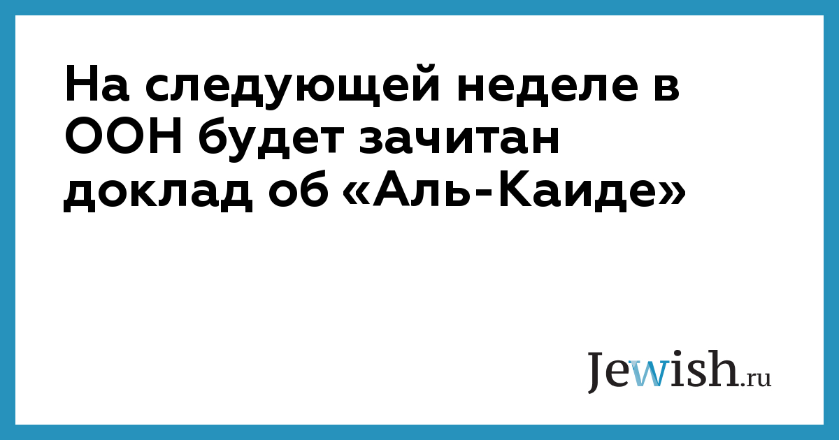 На следующей неделе в ООН будет зачитан доклад об «Аль-Каиде»