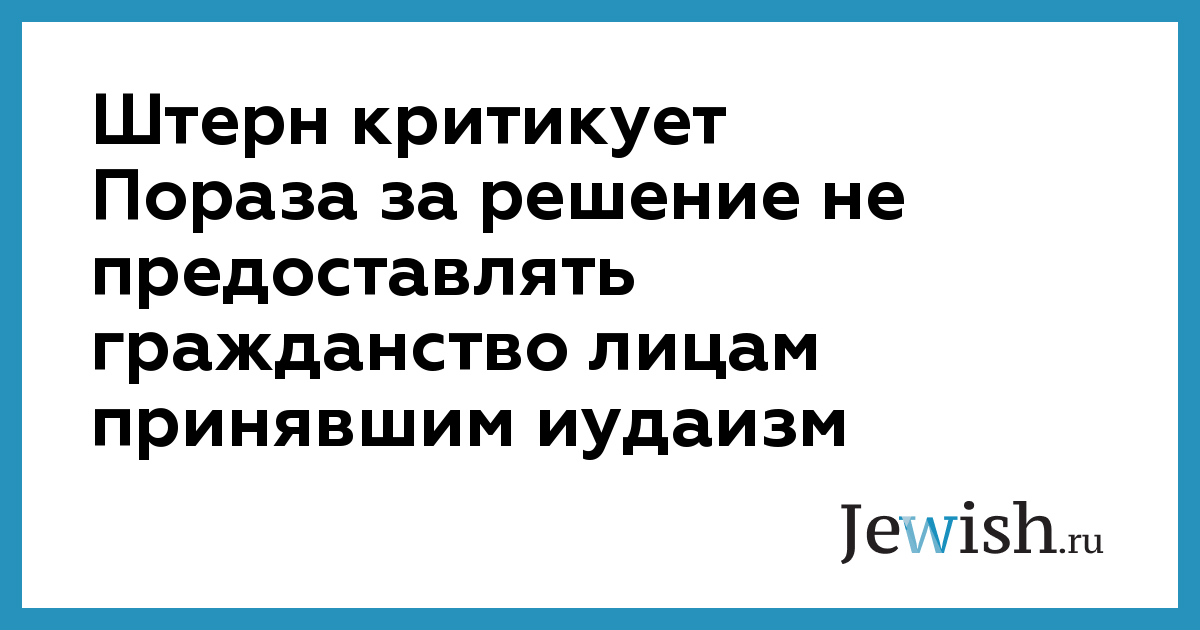 Штерн критикует Пораза за решение не предоставлять гражданство лицам принявшим иудаизм